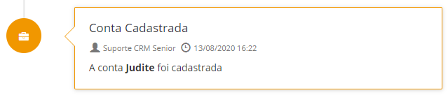 Vea a continuación un ejemplo de la vista de acción, en el cronograma de la cuenta, según el ejemplo anterior: