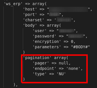 La estructura de paginación viene dada por un índice de configuración, definido comopaginación, que debe estar junto a la configuración de conexión.