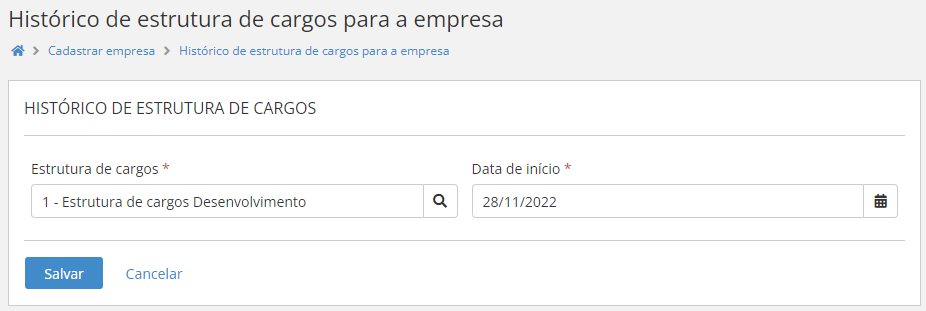 - Seleccione la estructura a vincular con la empresa e informe alfecha de inicio la historia de esta estructura.