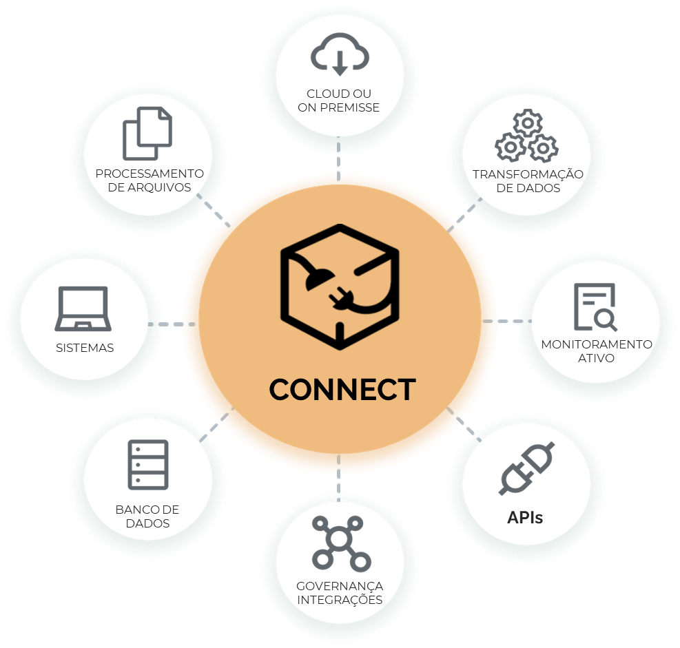 CONNECT es una plataforma de integración ofrecida como servicio (iPaaS), cuyo objetivo es proporcionar herramientascódigo bajo que facilitan los procesos de desarrollo y mantenimiento de procesos de integración entre sistemas.