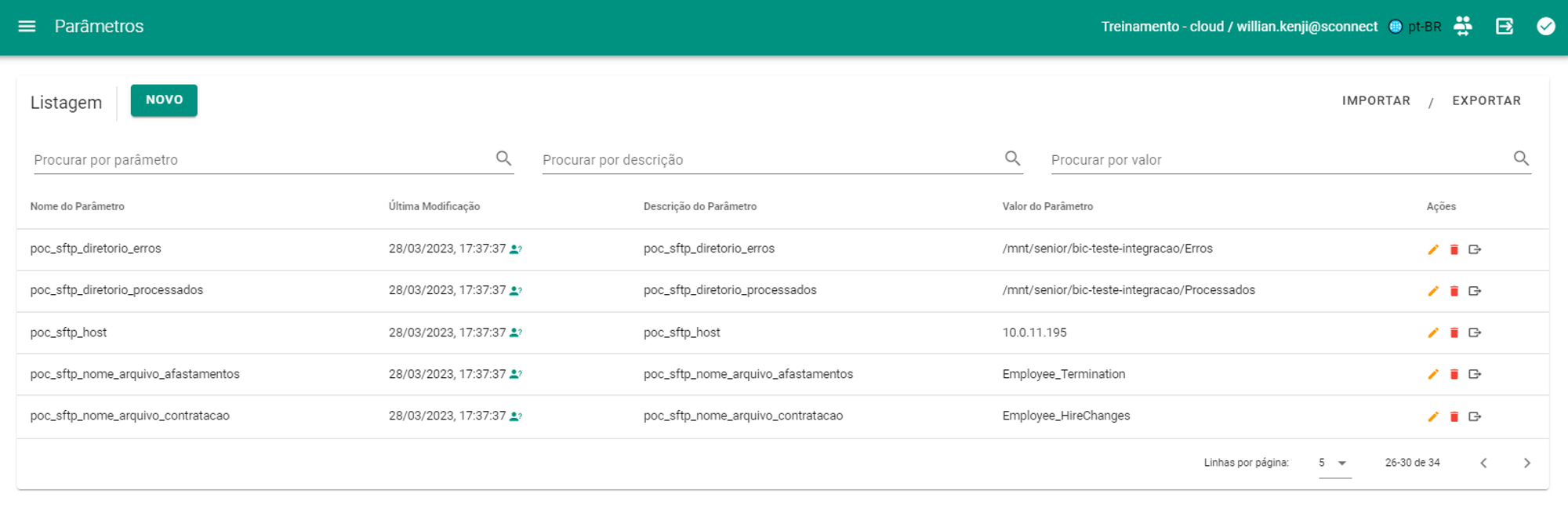 La pantalla de parámetros se puede utilizar como consulta de información como rutas estándar, URL de servicios web y otra información ambiental.