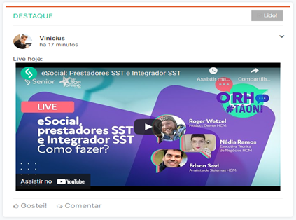 Al hacer clic en el mensaje, se enumeran las publicaciones, además de mostrar la publicación, también es posible ver cuánto tiempo estará disponible en la línea de tiempo.