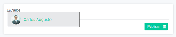 Al momento de la publicación, los usuarios registrados en el sistema pueden ser marcados con el término @Nombre de usuario.