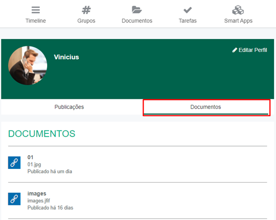 En el perfil también tenemos la posibilidad de visualizar documentos relacionados con las publicaciones que ha realizado el usuario. Para ello, haga clic en el botón Documentos.