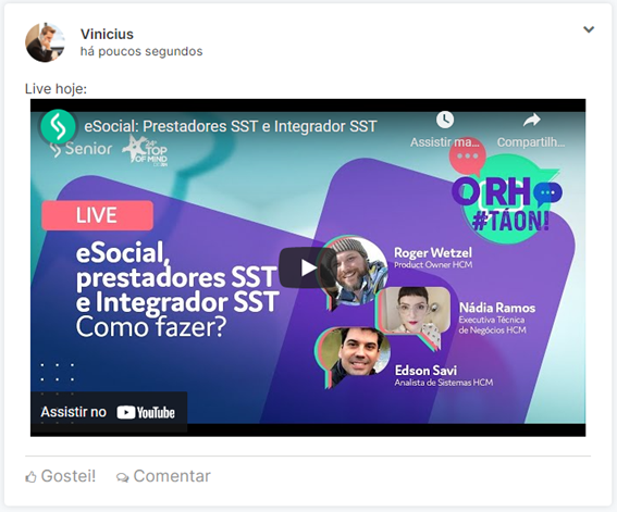 Social Studio renderiza automáticamente videos compartidos entre plataformas vimeo y YouTube, por lo que solo es necesario pegar el enlace en el cuerpo de la publicación.