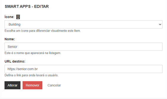 URL de destino: Campo donde se informará la dirección o link al que será redirigido el usuario al hacer click en la app.