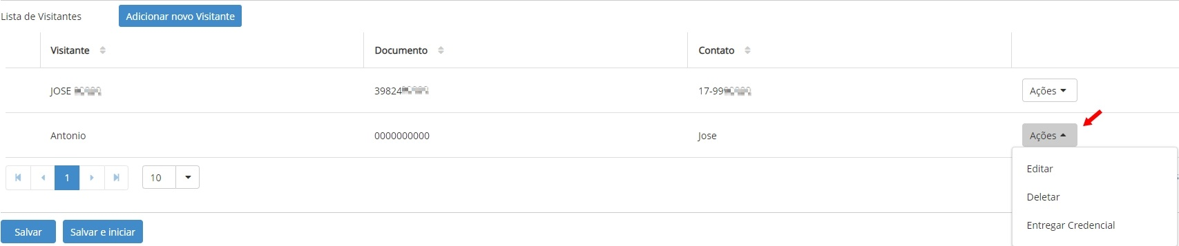 - Lista de visitantes:corresponde a los registros de los conductores en el sistema. El conductor (visitante) principal responsable de la agenda ya está previamente registrado por Ronda Senior, sin embargo, si este conductor (visitante) llega acompañado de otra persona para ayudar en la actividad, es posible registrarlo haciendo clic en el botónAñadir nuevo visitante, complete según sea necesario y haga clic enAhorrar Para terminar.