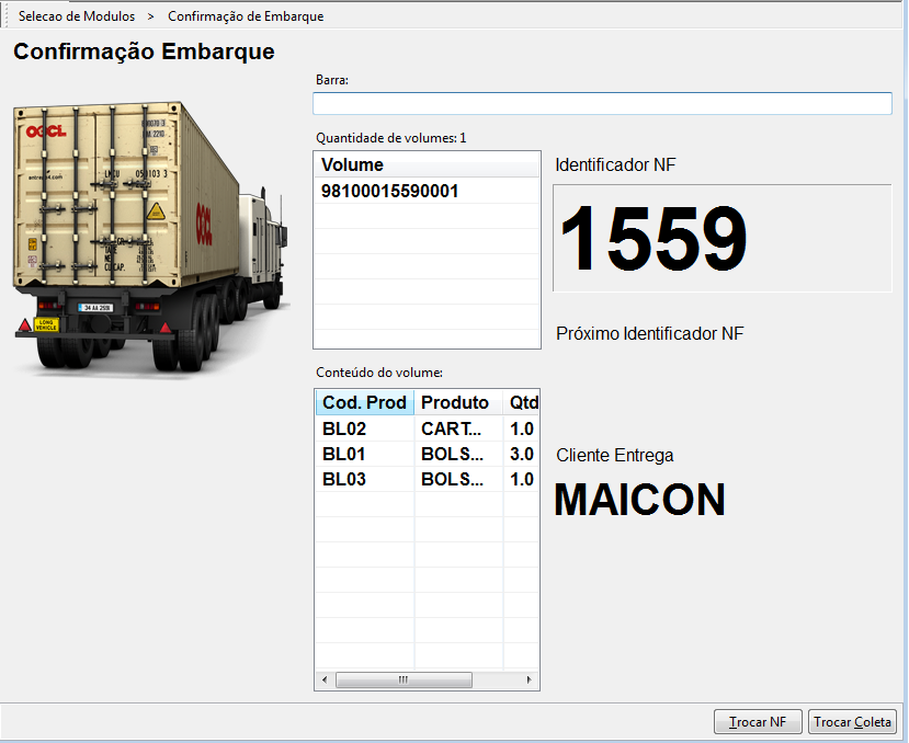 Elija el almacén donde se realiza la actividad y haga clic en el botón Confirmación de envío.