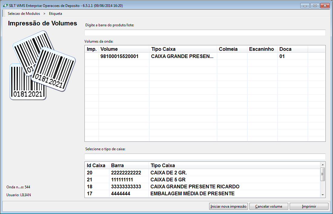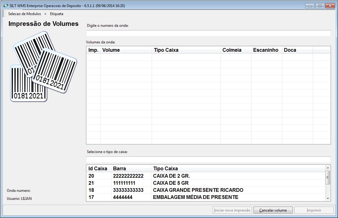 El sistema solicita el número de oleada y muestra todos los volúmenes generados, a partir de este momento es posible volver a emitir la etiqueta de volumen, trato de cambiar el Tipo de Caja y Cancelar el Volumen y volver al flujo de Empaque o Ensamblaje de Volumen en el Hive .