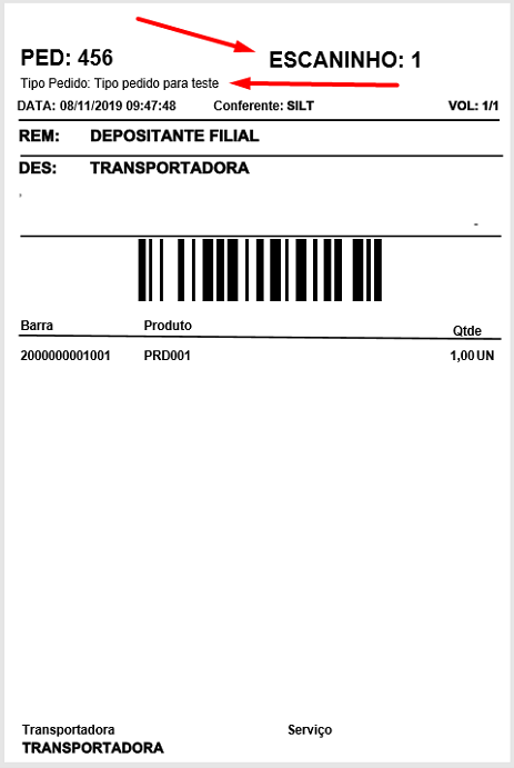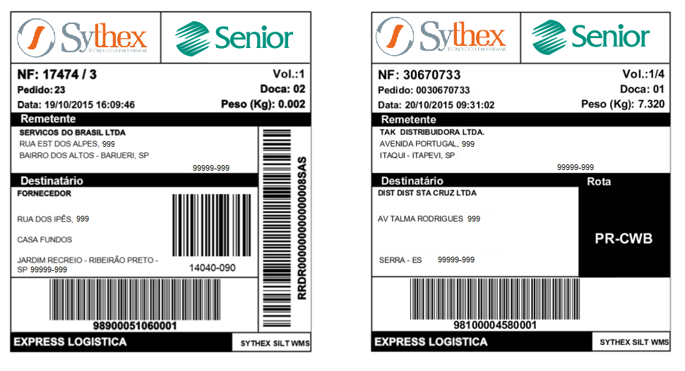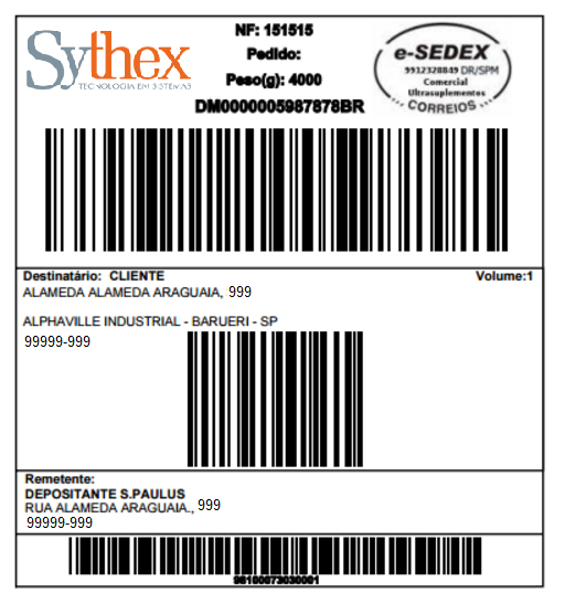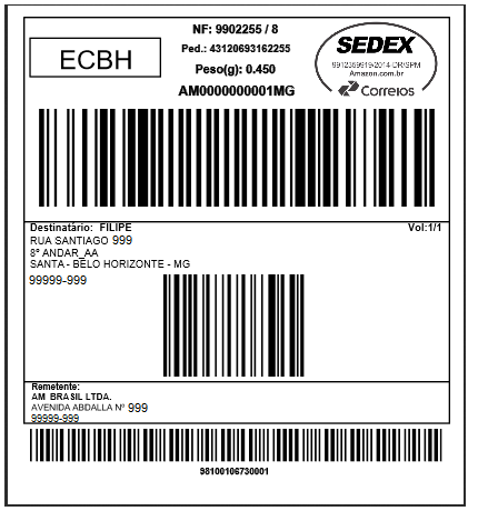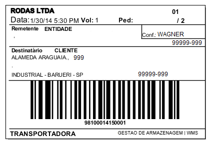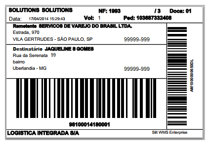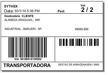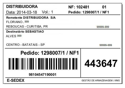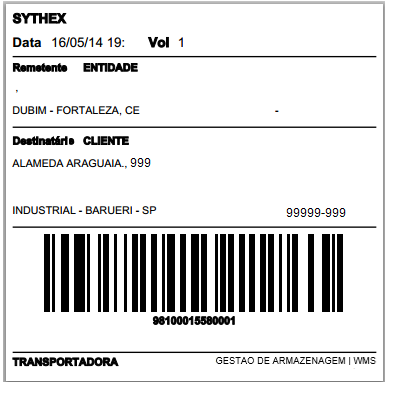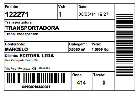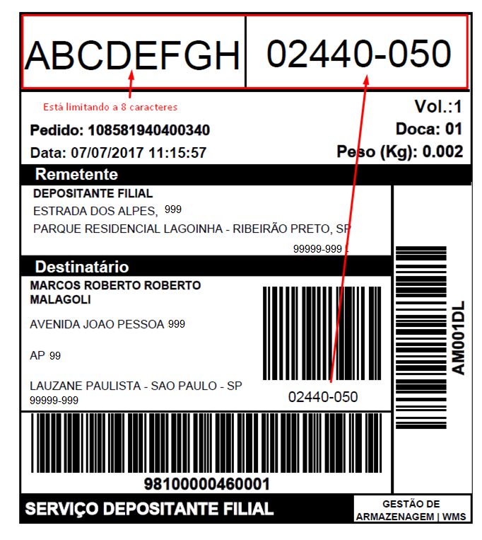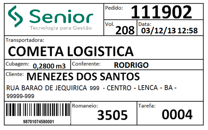 - Trazabilidad de etiquetas SortCode con servicio: etiqueta con dimensiones alto 119mm X ancho 109mm: etiqueta creada a partir de la versión 8.9.1.0, referida al Servicio de Transportista y Seguimiento, con diferenciación en el campo superior izquierdo con la información deletiqueta internalSortCode lleno ono durante la importación, limitado a ocho caracteres, y en el campo superior derecho, el código postal con la máscara “NNNNN-NNN” (ej: 90830-244).