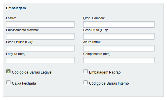 - Código de barras interno: a partir de la versión 8.11.5.0, si está marcado y hay integración para el empaque, marque el campo con el mismo nombre en el Registro de Empaques.