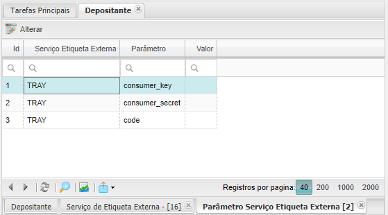 Funcionalidad creada a partir de la versión 7.0.0.0. Hay depositantes que contienen productos con un Código de Barras Especial, es decir, en ciertos casos pueden, además de identificar el producto, identificar información adicional que se solicita en algunos procesos del sistema. Un depositante puede tener una o varias reglas de códigos de barras. Esta pantalla muestra todas las Reglas de códigos de barras vinculadas al Depositante seleccionado.