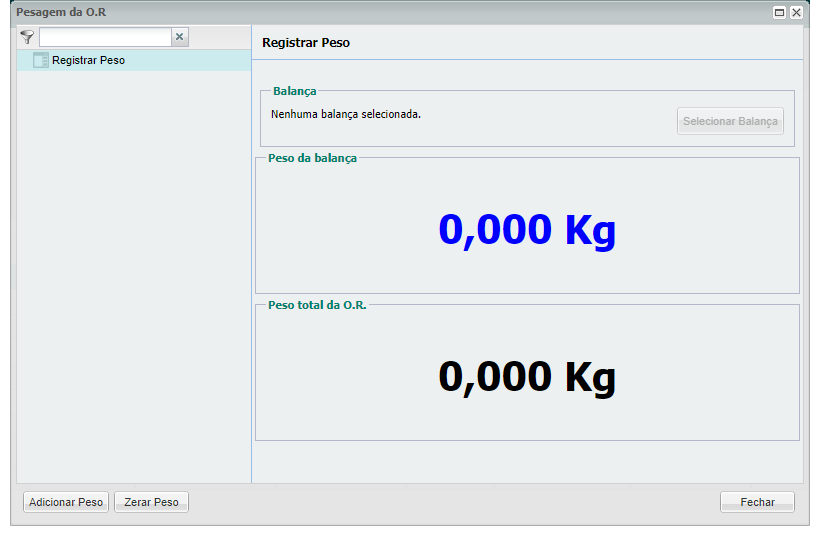 - Botón: Agregar peso: agrega el peso actual de la báscula a OR