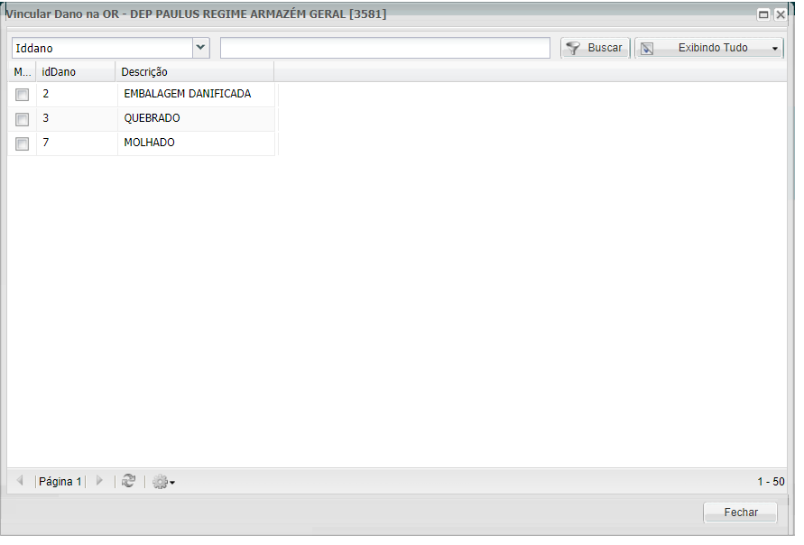 Vincula uno o más registros de Daños a la Orden de Recibo, que se registró previamente en el menú Registro> Entrada>Daño a la orden de recepción.