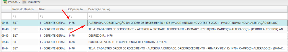Ejemplo de registro de seguridad. Consejo: para OR, el campo Operationid es el código de registro OR.