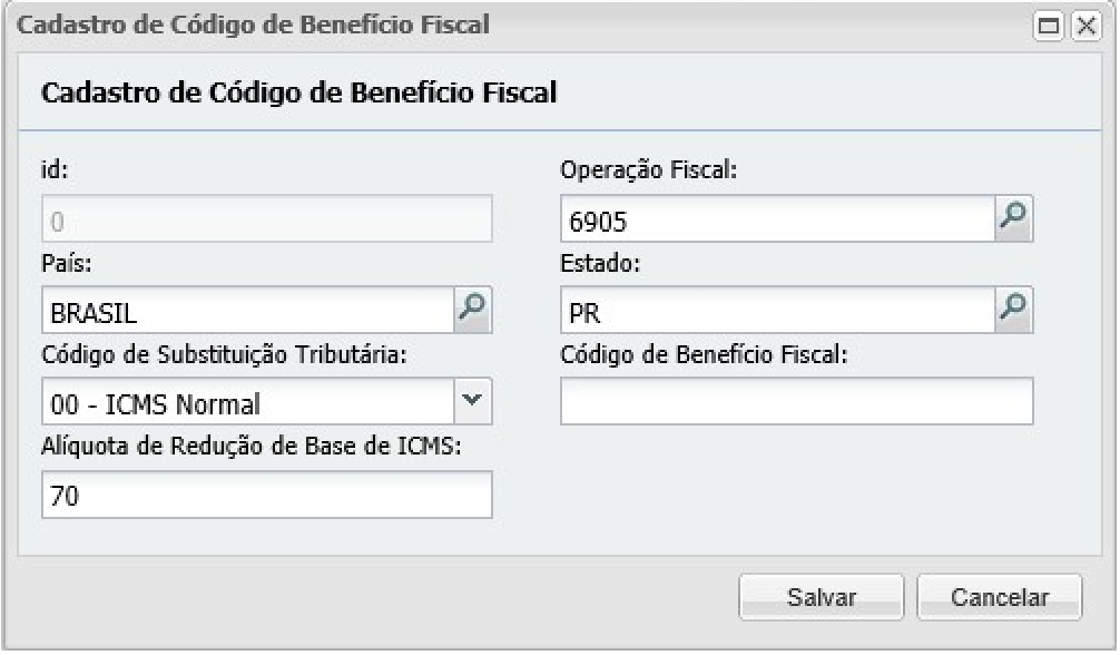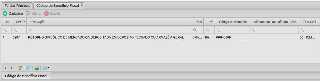 Menú: Registro> Impuestos> Código de beneficio fiscal