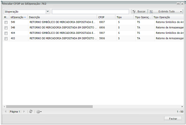 Sólo estará habilitado para operaciones de Clasificación CFOP Interna y Devolución de Almacenamiento/ Retorno simbólico.