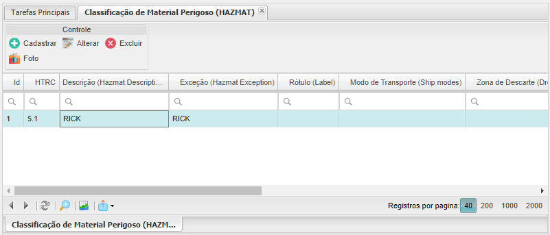Menú: Registro> Producto> Clasificación de materiales peligrosos (HAZMAT)