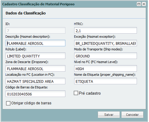 Esta pantalla es responsable de registrar las clasificaciones de materiales peligrosos HAZMAT, comenzando con las versiones 8.11.20.0,ver más detalles.