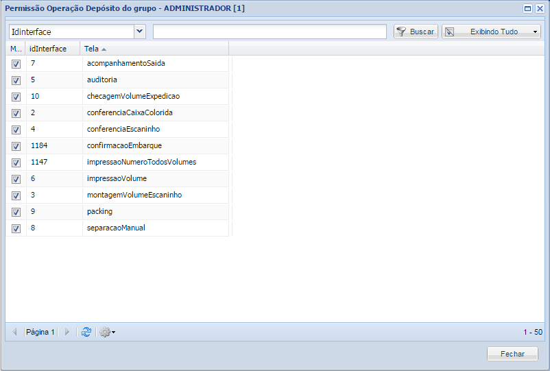Informa qué menús de la aplicación Operación de almacén tiene derechos de acceso el grupo seleccionado.