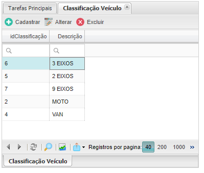 Menú: Registro> Vehículo> Clasificación de vehículos