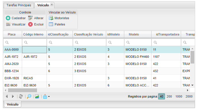 Esta pantalla se utiliza para registrar / visualizar los vehículos que pueden servir al almacén.