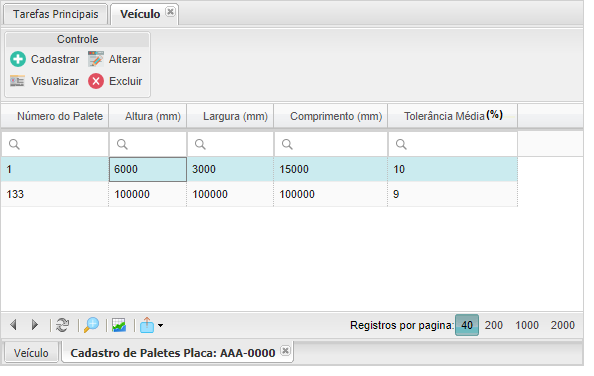 Permite dar de alta, cambiar, visualizar y borrar los pallets del vehículo.