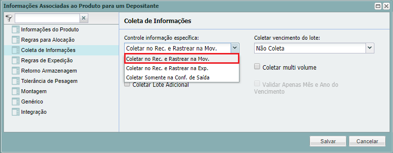 Esta pantalla se usasolamente porProducto x Depositante parametrizado con trazabilidad total:Recoger en Rec. Y rastrear en Mov.