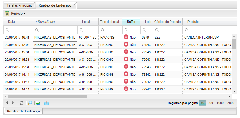El informe Address Kardex muestra varias columnas que representan la cantidad total de stock de productos en el almacén (logueado), con la posibilidad de ensamblar filtros, importar archivos a Excel, agrupar campos, habilitar o deshabilitar columnas.
