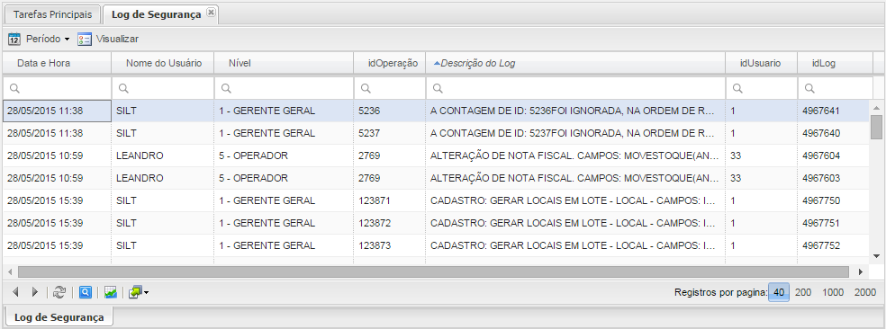 Menú: Consulta> Registro de seguridad