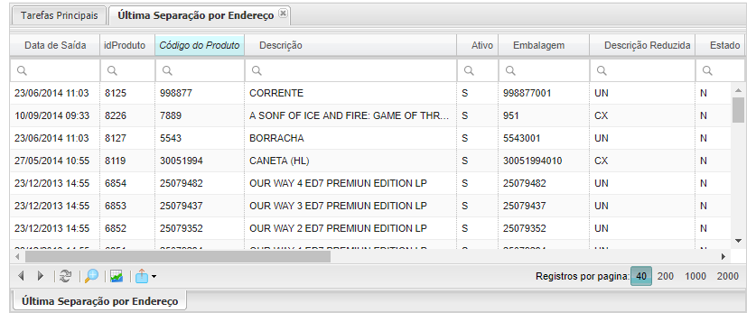 Este informe muestra las ubicaciones y movimientos de los productos y su embalaje, cuántos días desde la última salida, si se movió desde el lugar de picking y el depositante del producto.