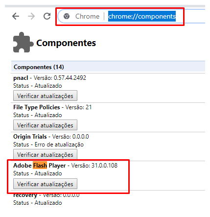 - En primer lugar, debe verificar si Chrome tiene Flash instalado a través de la URL chrome: // components / de acuerdo con: