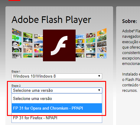 . - Casono tiene Flash instalado, puede descargarlo a través del enlace a continuación, seleccionando la versión del sistema operativo y la opción para Opera y Chromium