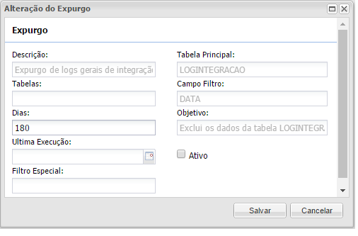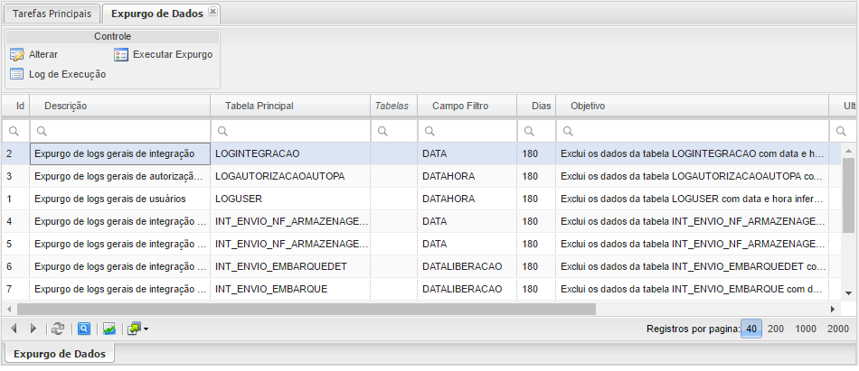 Funcionalidad creada a partir de la versión 8.3.0.0, que controla el uso o no de la herramienta y la frecuencia, es decir, el sistema programa el borrado diario de datos, con Fecha menor o igual a Fecha actual menos el número de días configurados.