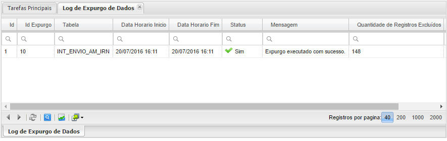 Pantalla creada a partir de la versión 8.3.0.0, muestra los historiales según la ejecución del Purge, es decir, según la activación de la configuración del menú Gestión de Expurgo / Expurgo de Datos.