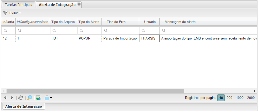 El sistema muestraalerta de pop-up, o al iniciar sesión o enviar un correo electrónico, cuando hay errores en los archivos de integración o si algún tipo de archivo permanece por un período determinado sin ser importado generando historial en el menúImportar alerta. Según el vínculo deDepositor, porUsuarios, porTipo de error: (Importar detener / Archivo con error) en el menúConfiguración de alertas de integración.