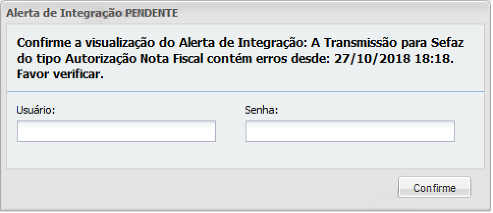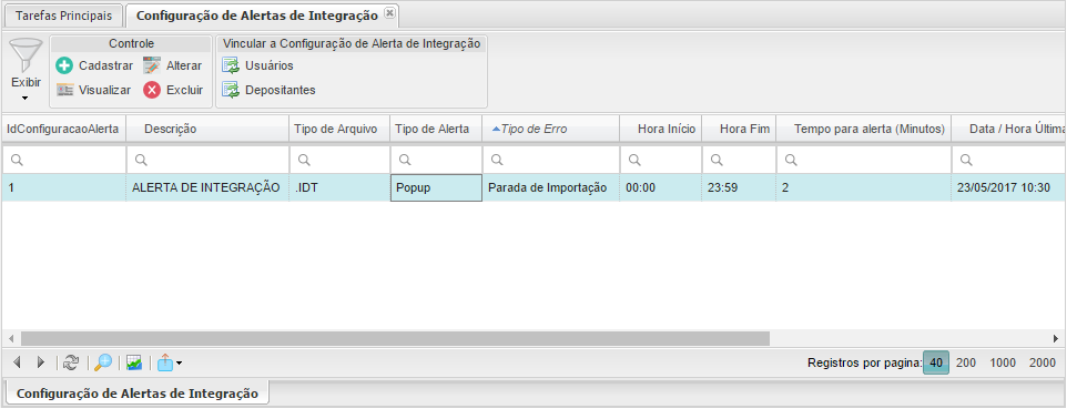 El sistema muestraalerta de pop-up, o al iniciar sesión o enviar un correo electrónico, cuando hay errores en los archivos de integración o si algún tipo de archivo permanece por un período determinado sin ser importado generando historial en el menúImportar alerta. Según el vínculo deDepositor, porUsuarios, porTipo de error: (Importar detener / Archivo con error) en el menúConfiguración de alertas de integración.