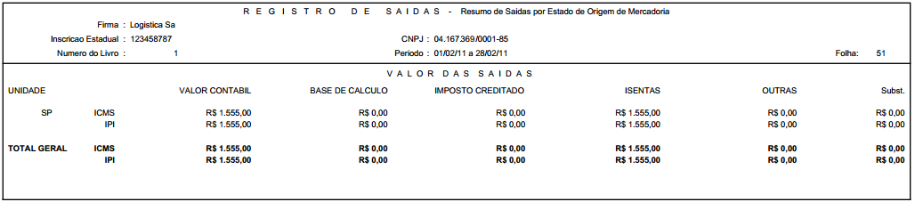 Registro de salidas: resumen de salidas por estado de origen de las mercancías