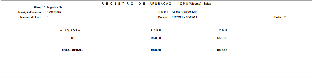 Registro de cálculo -ICMS (Alícuota) - Saliente