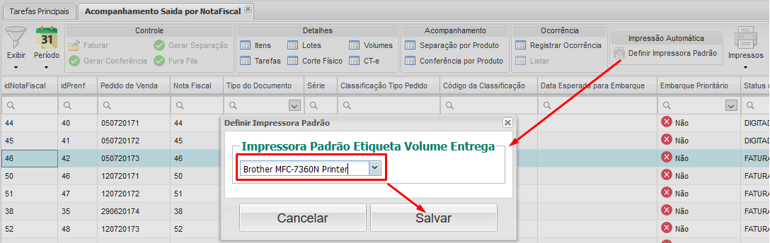 Esta pantalla muestra una descripción general del estado del pedido/factura dentro del almacén; sin embargo, esta pantallaNo informa si el pedido/factura ya ha sido vinculado a un cobro, y también No muestra la ciudad del destinatario de la nota. Para más detalles.