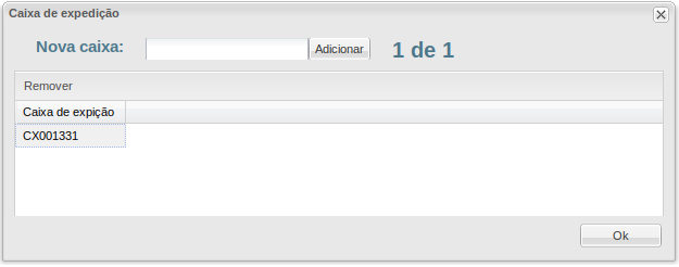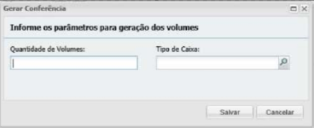 Si el parámetroInformar número de volúmenes al generar conferencia está marcado en el registro del depositante, le permitiráinformar el número de volúmenes y elegir el tipo de caja