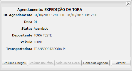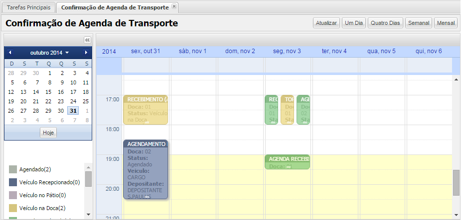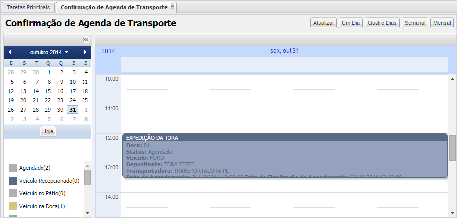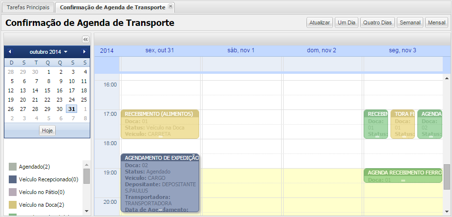 - Desde el momento en que el paso de Programación se cambia a "Vehículo en el muelle", la Programación está esperando que el estado OR cambie a "Verificado" o "Liberado con divergencia". Si el horario tiene el modal "Rodoviário", el sistema envía el horario al segundo paso de pesaje.