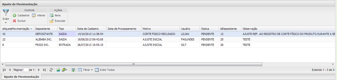 La cuadrícula de la pantalla de ajuste de movimiento tiene el botónMonitor mostrando filtros de columnaSituación que muestra los registros: Todos, Pendientes o Finalizados.