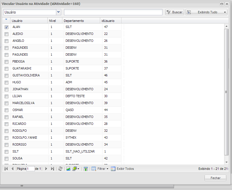 Muestra una ventana para vincular a los usuarios con las convocatorias de actividades que son responsables de la actividad en el almacén.
