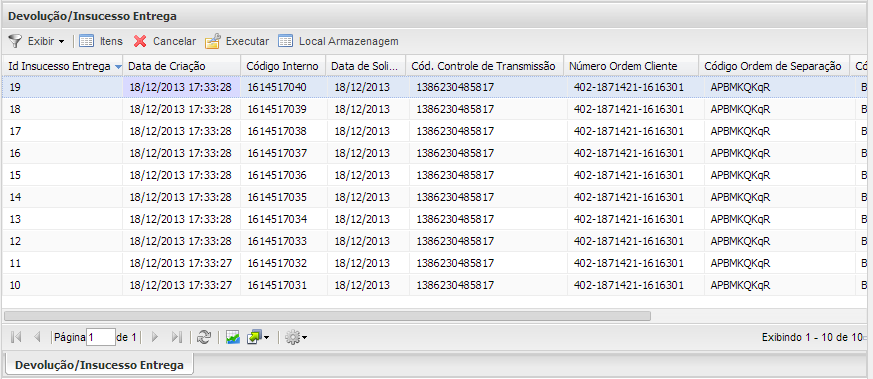 A partir de la versión 7.5.0.0, se implementó la verificación para habilitar la Devolución / Entrega fallida solo si no hay ningún producto con la relación Producto x Depositante "Lote único en volumen" seleccionada, para la importación del archivo "CRN“.