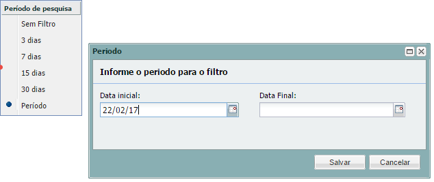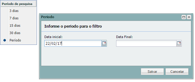 Filtro de fecha predeterminado como se usa en el sistema últimos 3 días, 7 días, 15 días, período.