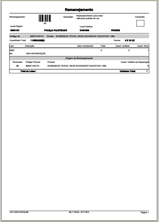 Una reubicación solo se reutiliza en la ola sino fue finalizado y si no fue marcado como impreso, a continuación se muestran las pantallas para imprimir la reubicación:
