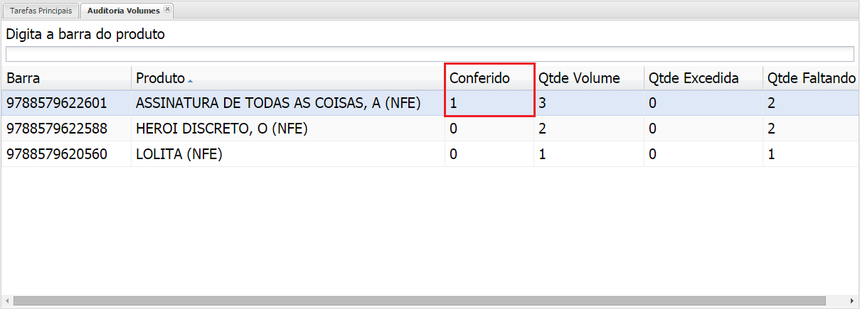 A medida que el verificador de la auditoría emite un pitido con los códigos de empaque que aparecen en el volumen, el sistema actualiza las cantidades de las columnas Comprobado, Cant. Faltante.