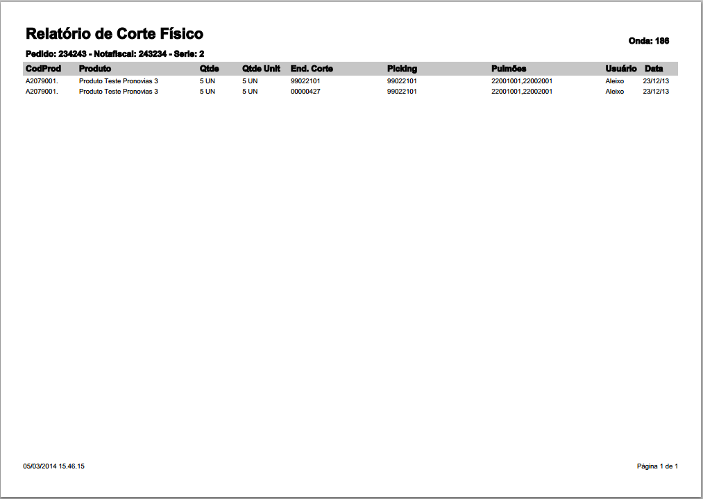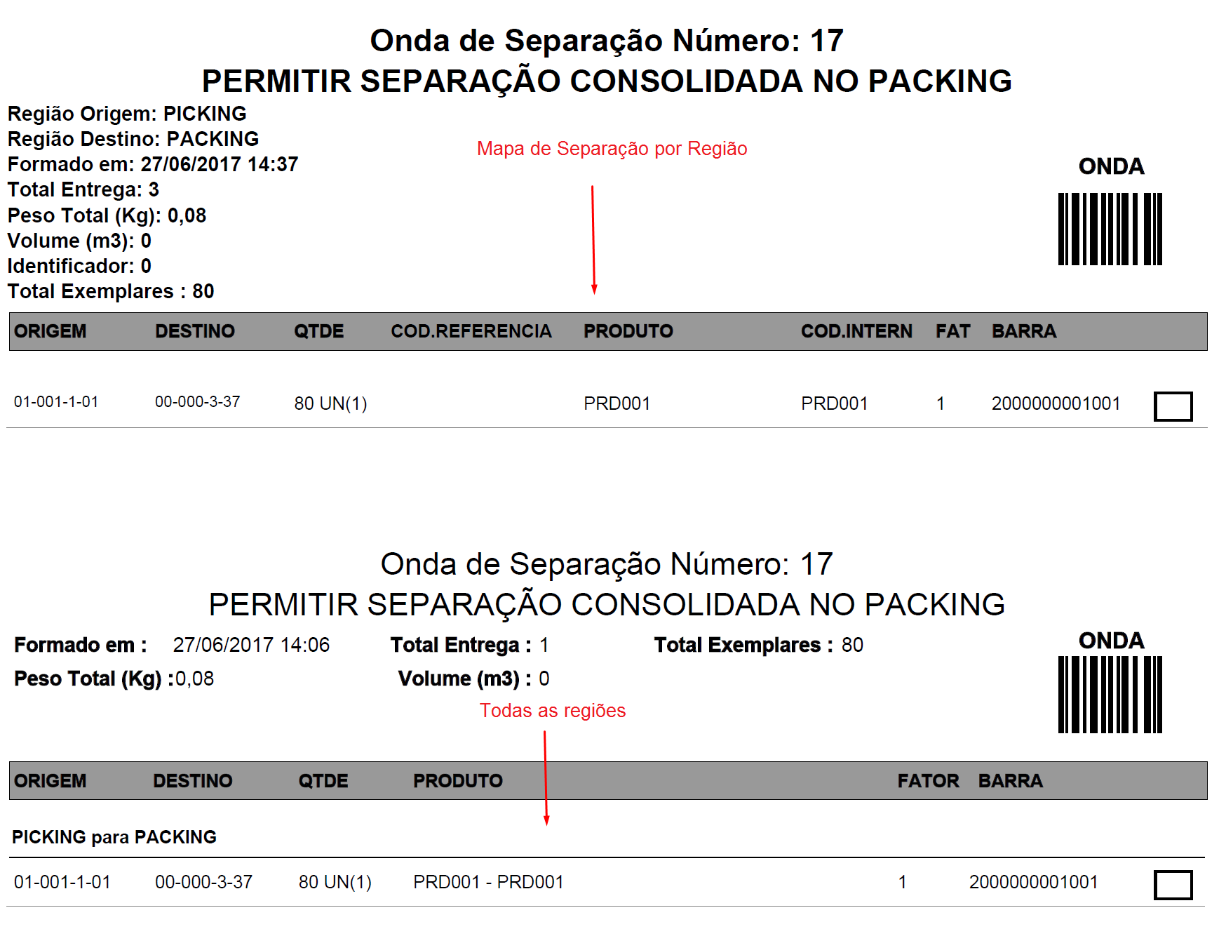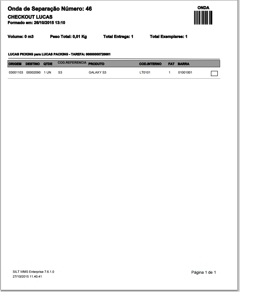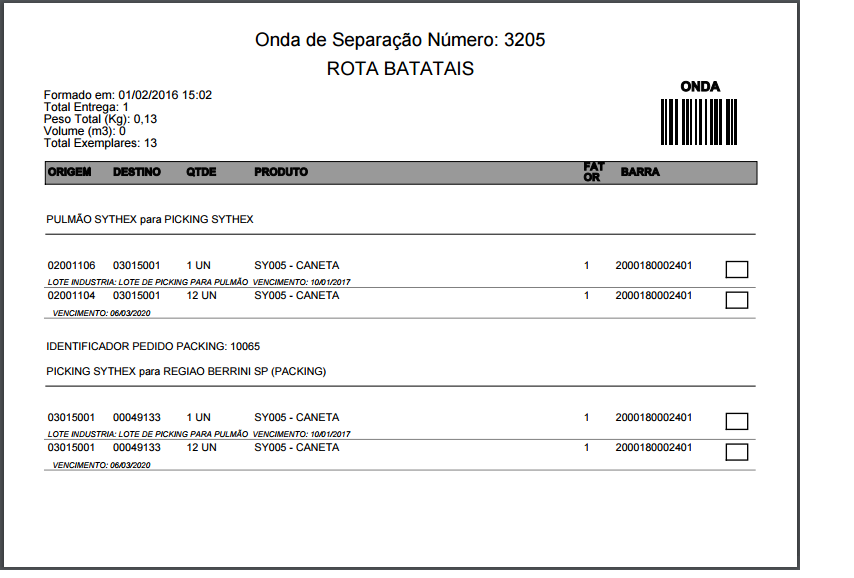 . A partir de la versión 7.6.0.0, cuando Wave Flow es de Checkout Express, se imprime el modelo informado a continuación y no se solicita ninguna región de impresión.