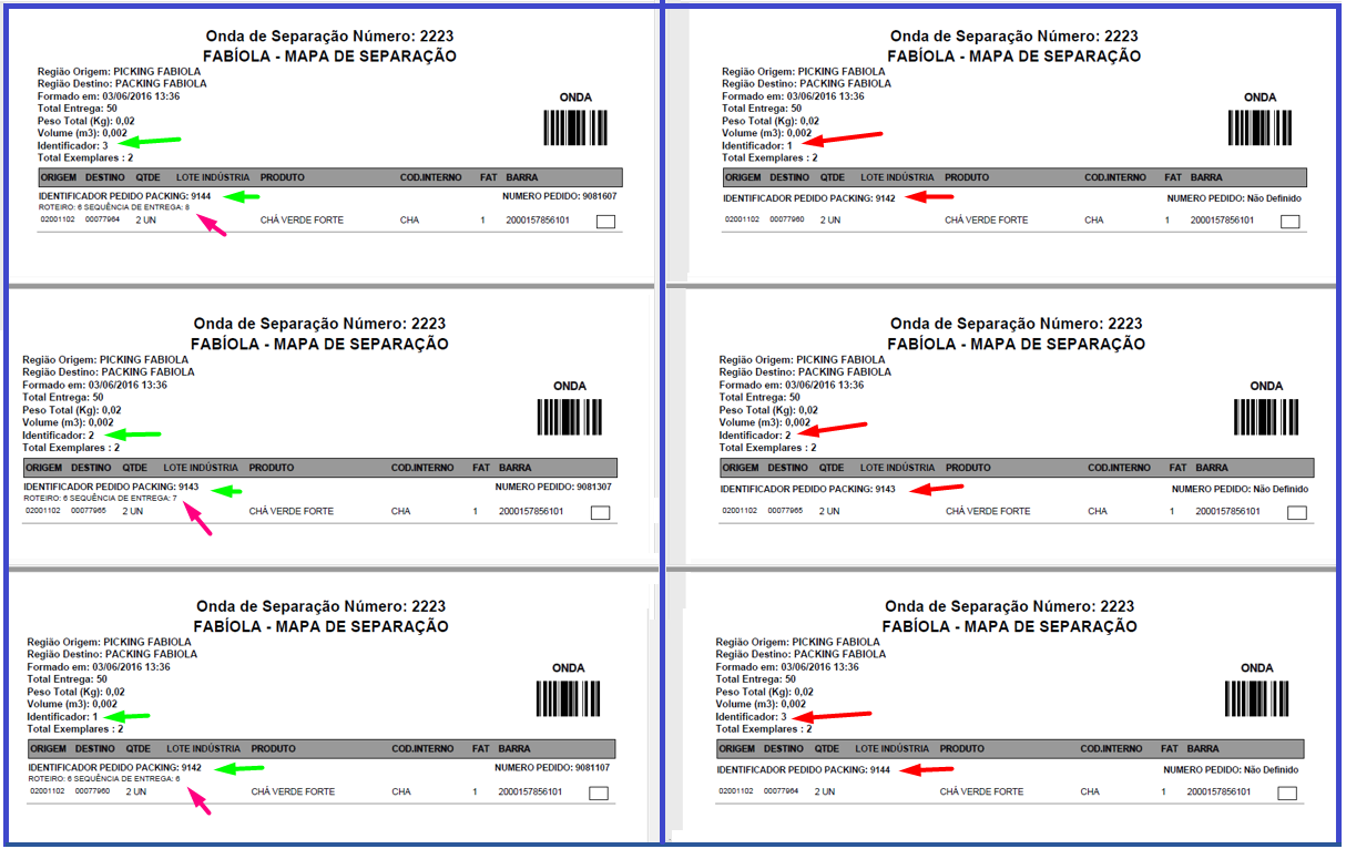 En lugar de agrupar el Mapa de separación de las regiones por Identificador de pedido (Id de factura) y Número de pedido, los informes traen los productos a ser separados agrupados por Pallet y Tarea.